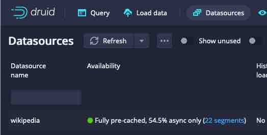 This forces the morning segments to be available for asynchronous query only. You will see this reflected in the Datasources view like this: